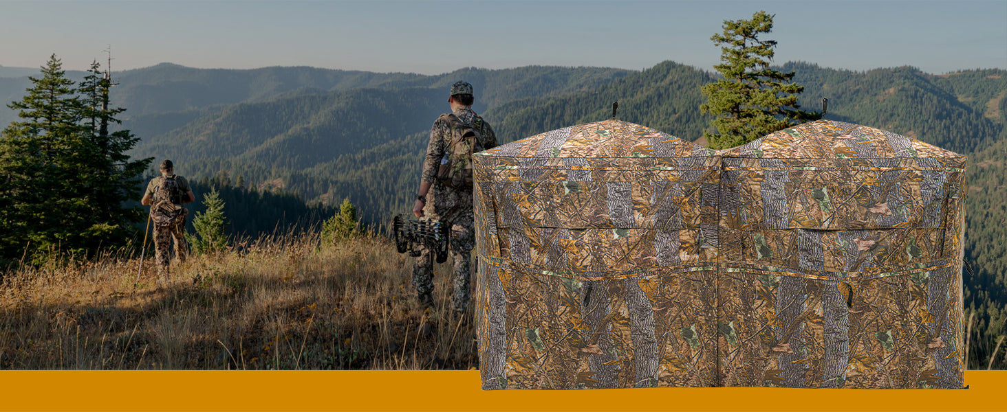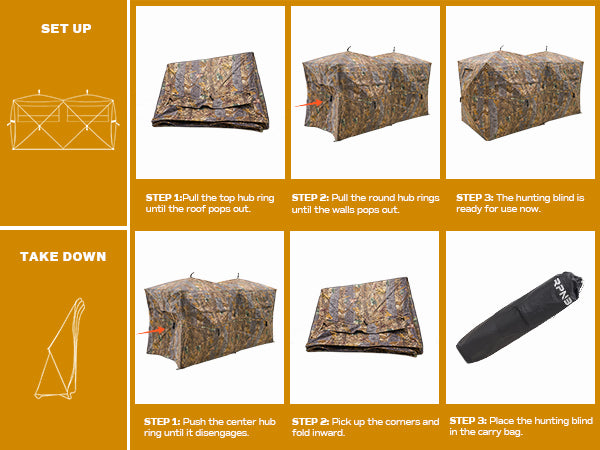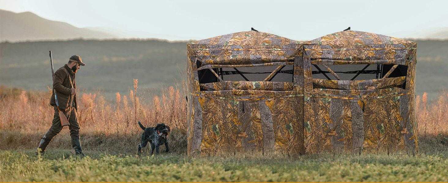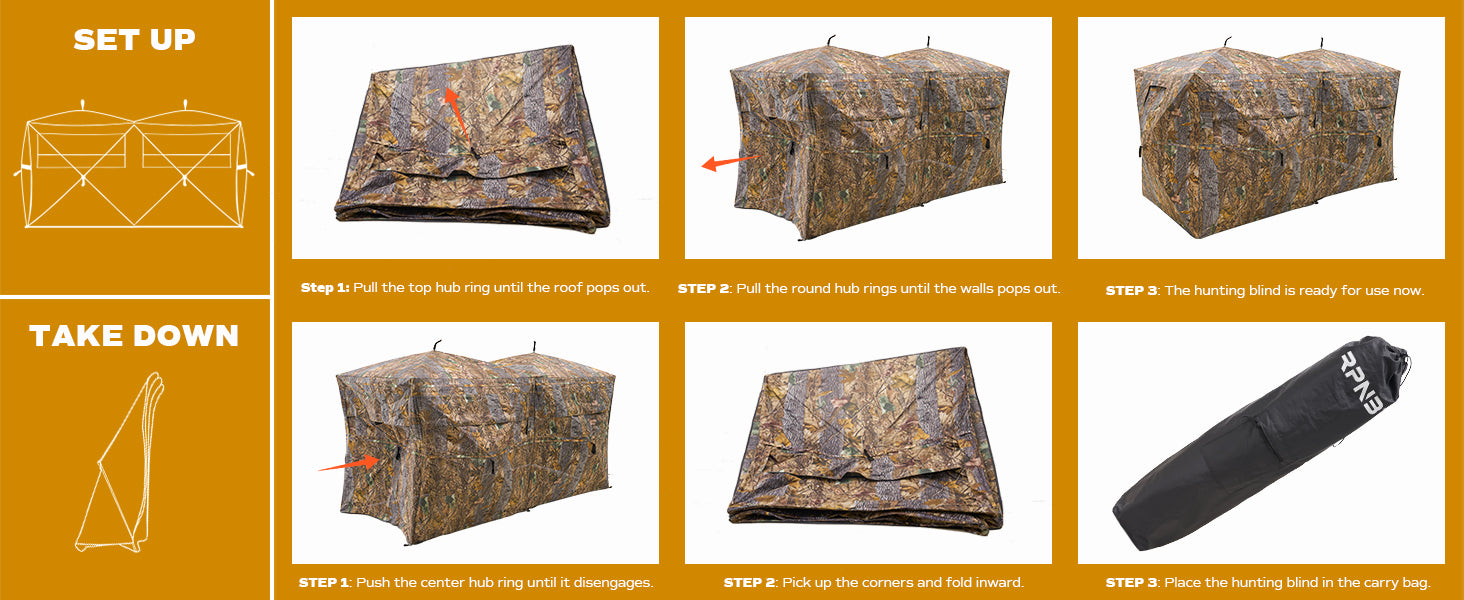 RPNB Huntuing Ground Blind, One-Way See-Through Side-By-Side 4-6 Person Hunting Blind, Two Pop-Up Camouflage Hunting Tents with Noise-Free Windows